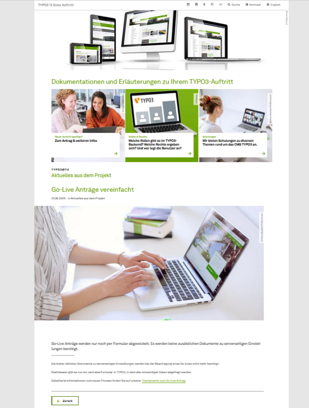 Ohne explizit konfigurierte Detailansicht wird die Listenansicht durch die Detailansicht ausgetauscht und alle anderen Inhaltselemente werden zusätzlich dargestellt.
